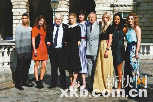 圖為2012春夏倫敦時裝周開幕式上的一張合影,英國時裝理事會主席Harold Tillman CBE和倫敦市長Boris Johnson共同啟動了2012年奧運會攜手"英國創意2012"的計劃,並偕同一群由著名運動員、名模組成的倫敦形象大使,共同演繹著屬於倫敦的時尚和魅力。
